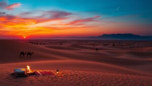 Imagine waking up to the desert’s calm sounds. The wind’s soft whispers and the vast dunes promise an adventure. On a morning desert safari, you