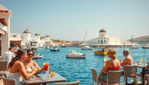 As you arrive on the sunny beaches of Mykonos, Greece, a soft breeze shares stories of wonder and adventure. Picture yourself diving into a culture