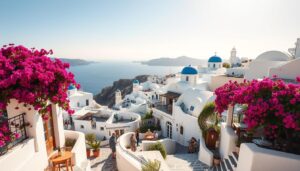 Imagine you are standing on a cliff. The Aegean Sea stretches endlessly before you. It’s bathed in the golden light of a Santorini sunset. This