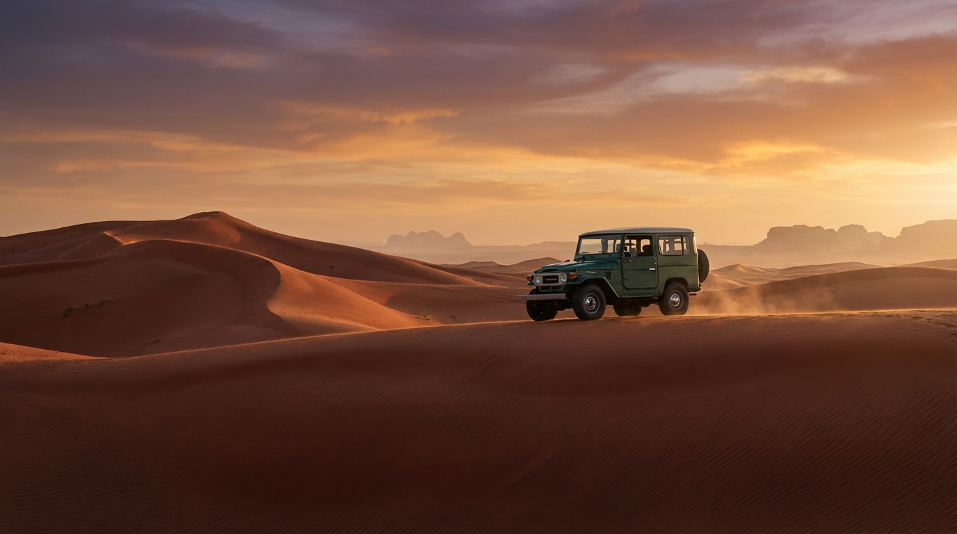| Evening Sunset Lahbab | Pickup, sunset runs, Desert BBQ, photo stops | Photographers, groups | 900–3,000 per vehicle |