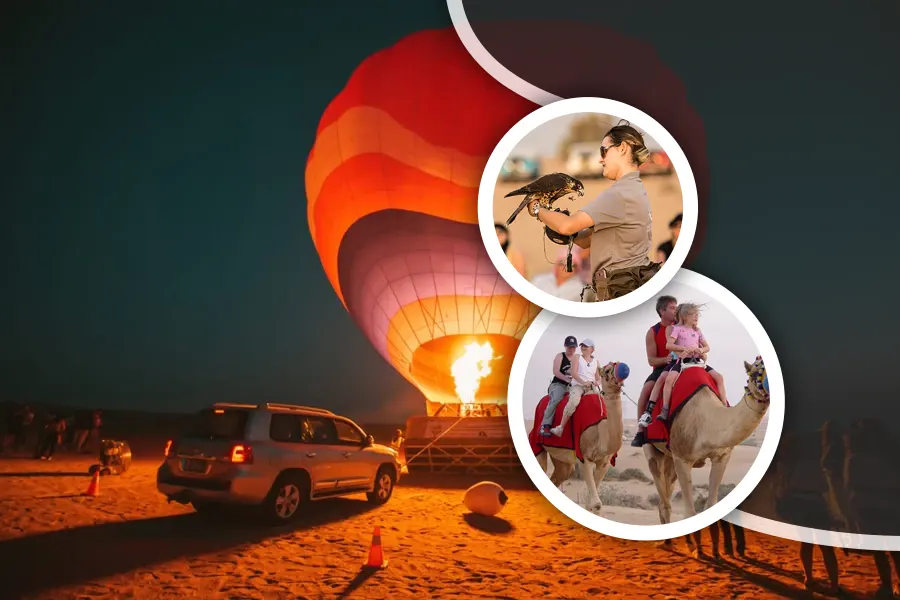 Our Premium Package is a thrilling adventure in Dubai’s desert. It includes pick-up and drop-off anywhere in Dubai. Start your day with a stunning sunrise from our Hot Air Balloon Dubai.