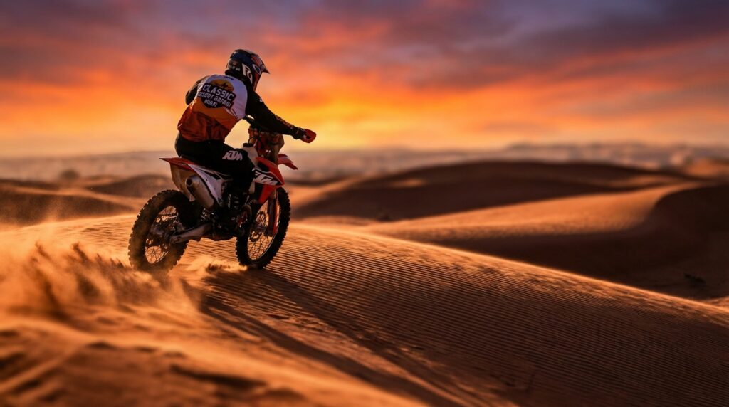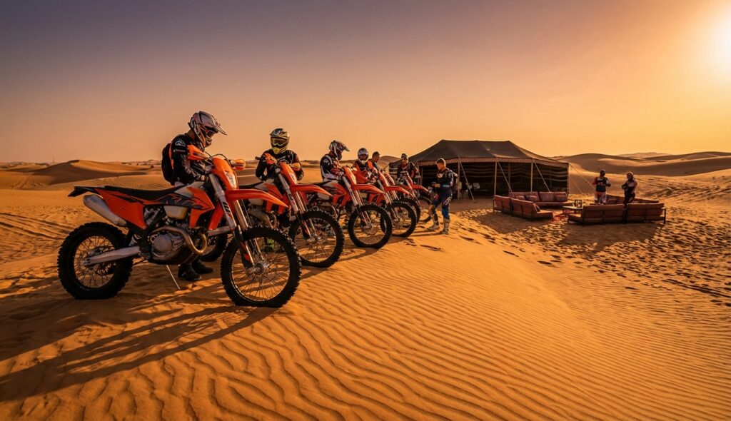 Advanced KTM dirt bike rentals in Sharjah with guided runs from Al Marmoom and Lahbab Red Dunes. Safety, packages, pickup and family services for February 2026.