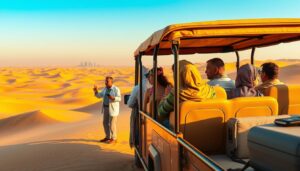 Imagine standing in the vast Arabian desert, with golden dunes all around. The sunset’s soft glow makes it magical. This dream can come true in