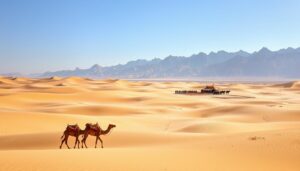 Imagine standing on a sun-kissed dune. The warm breeze brushes your skin. You watch sunset colors paint the Arabian sky. This is the Dubai desert