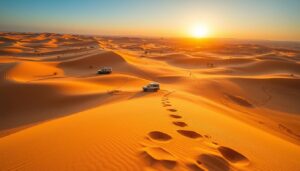 Have you ever felt a place was untouched, with only the wind’s whisper? Imagine being in Dubai’s vast deserts as dawn breaks. The sky turns